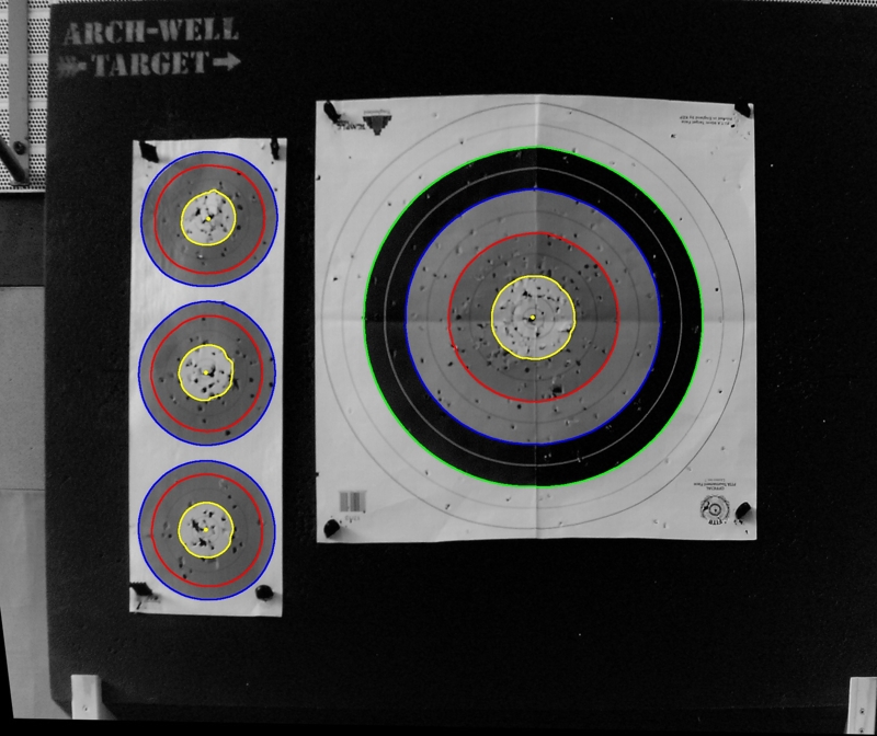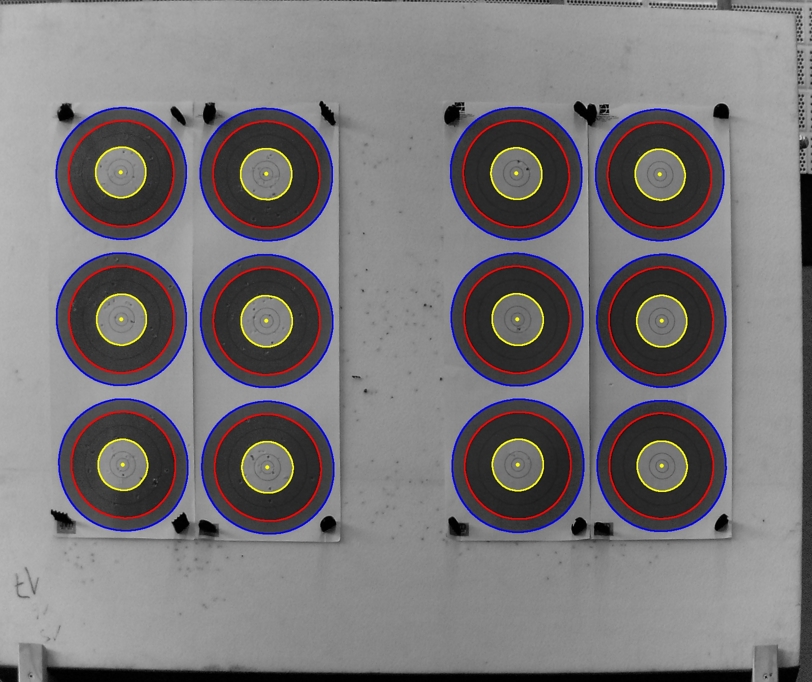 Es wurde häufiger die Frage gestellt, ob RyngDyng mehrere Auflagen auf einer Scheibe gleichzeitig erfassen kann. RD720 kann 4 Auflagen gleichzeitig erfassen, RD600 verarbeitet zuverlässig 2 Auflagen. Alle zulässigen Anordnungen der Auflagen nach WA werden automatisch erkannt und mit den korrekten Bezeichnungen A, B, C und D versehen. Jeder Treffer wird dann dem Schützen zugeordnet, der für diese Auflage eingetragen wurde. Alle Schützen können an der Schießlinie 'ihre' Auflagen am Tablet / Handy anzeigen lassen. In der nachfolgenden Analyse lassen sich die Treffer getrennt für jeden Schützen auswerten.